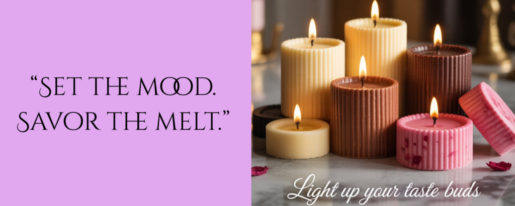 An edible candle is a candle made from food-grade, edible ingredients that can be safely eaten once it melts. Instead of wax meant only for burning, edible candles are usually made from things like butter, ghee, chocolate, sugar, or(food-grade) and are designed to melt into a sauce, dip, or spread.